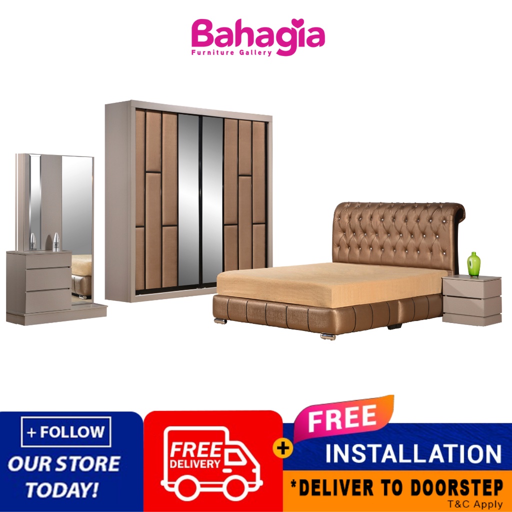 Bahagia Pandora Bedroom Set Bedframe Wardrobe 8ft X 8ft Dressing Table Stool Side Table Shopee Malaysia
