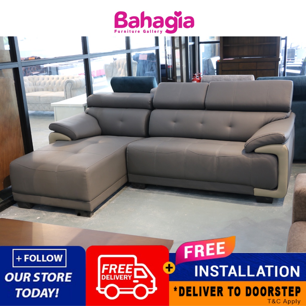 Bahagia Casa Leather Scott L Shape Sofa Grey Dark Brown Colour Free Installation Shopee Malaysia